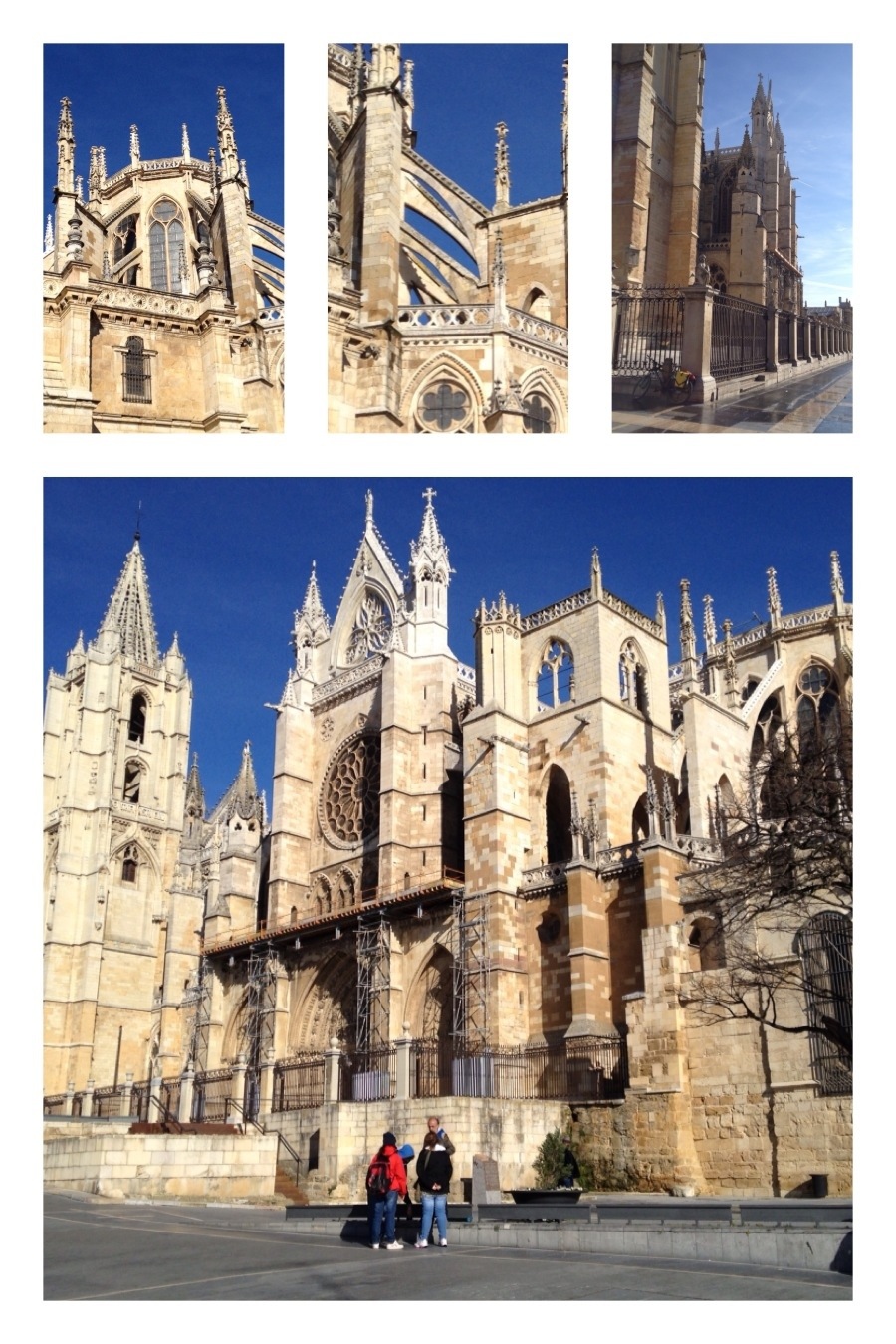 Veinte kilómetros sin mucha historia me dejan en León, donde a las 10 de la mañana estoy desayunando cerca de la catedral. El casco antiguo es una maravilla. Doy una vuelta rápida por las calles del centro: la Casa Botines, obra de Gaudí, la Real Colegiata de San Isidoro, la Catedral, la Iglesia de San Marcos, convertida en Parador… Solo un vistazo, cuatro fotos y he de seguir camino…