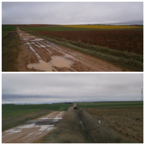 El gran problema es el barro y también algunas zonas en las que el camino está destrozado por las obras de la autovía. Es de chiste que después la llamen Autovía Ruta de la Plata cuando se carga tramos del trazado original de la vía de la Plata…