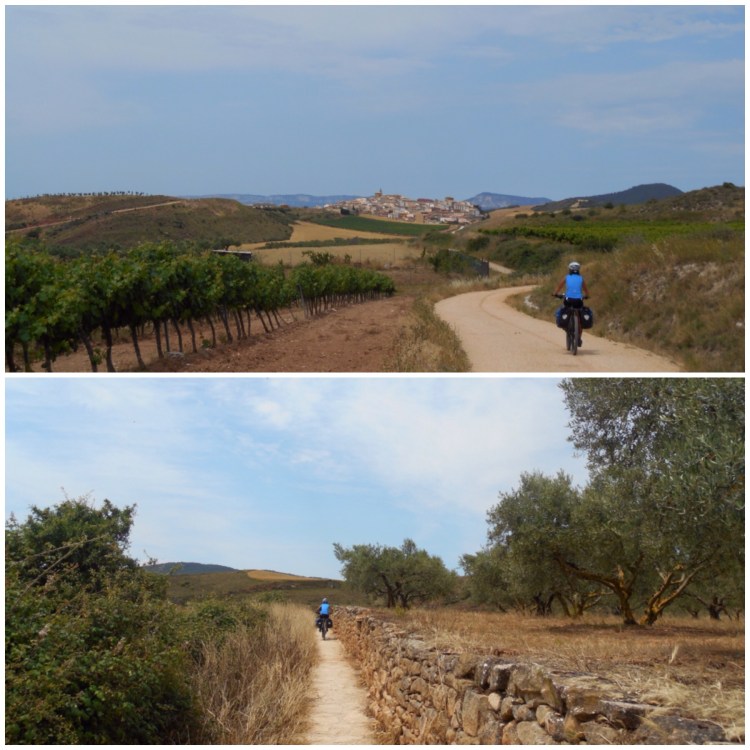Y así seguíamos haciendo kilómetros y pasando como ayer muchísimo calor. La vegetación va cambiando y entre Mañeru y Cirauqui hemos visto las primeras viñas y los primeros olivos.