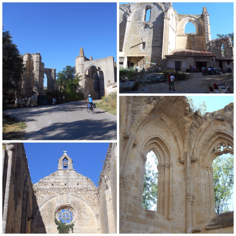 Después de Hontanas hemos visto las ruinas del Convento de San Antón, donde en medio de las paredes destruidas hay un pequeño albergue «alternativo» sin electricidad llevado por unos americanos. Para los que quieren vivir el Camino de forma más «auténtica» y volviendo a la esencia de las peregrinaciones medievales (es decir sin ducharse demasiado a menudo) de vez en cuando hay albergues de este tipo, algunos sin electricidad ni agua… A mí me ha pillado un poco mayor pero si a alguien le apetece ya lo sabe.