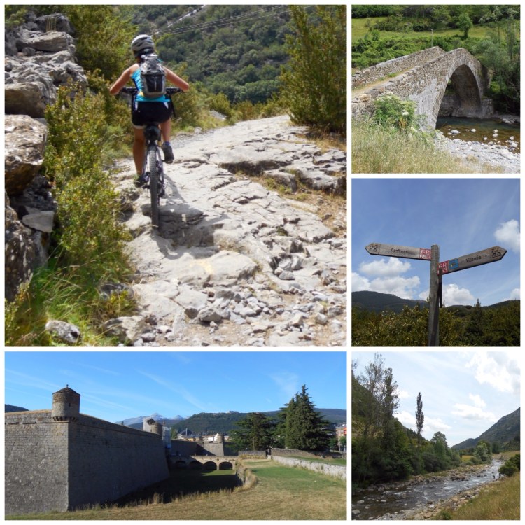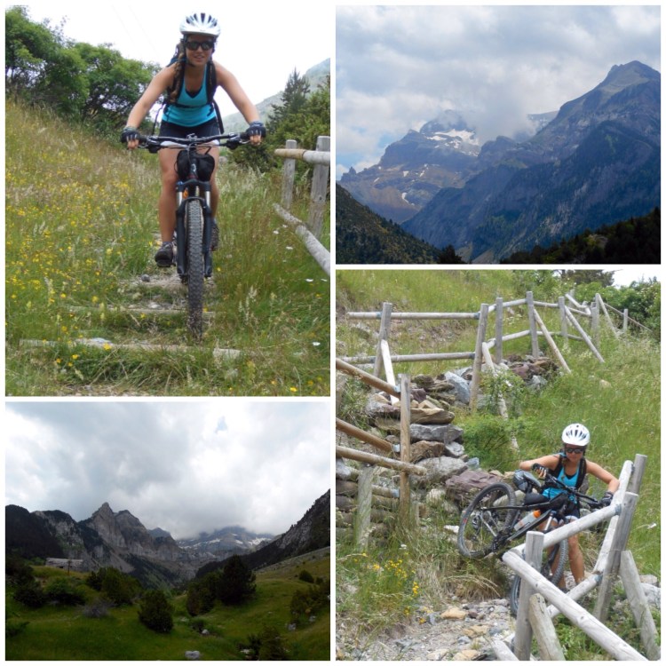 Dejando aparte los tramos de escalones, el descenso es espectacular. El sendero es muy técnico con tramos rocosos que no siempre podemos pasar subidos en la bici pero estamos en pleno Pirineo y el paisaje es precioso.
