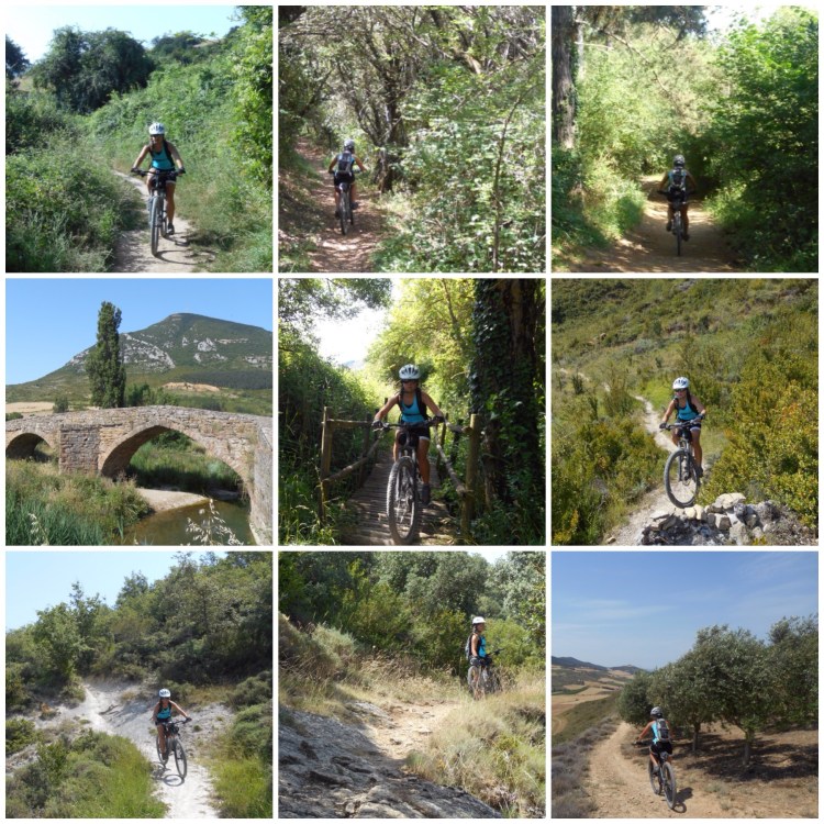 Pasado Nardues-Aldunate la ruta sigue por un sendero que remonta bruscamente para ir a empalmar con el camino tradicional (del que nos habíamos desviado para hacer la variante de la Foz de Lumbier) en la pista que asciende al Alto de Loiti. La subida es dura y el terreno difícil así que hemos de empujar la bici más de una vez.
