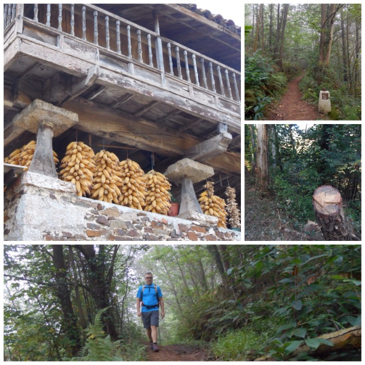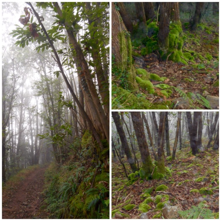 Después de Cornellana hay un tramo un poco feo, con una subida por una carretera en obras y los alrededores de una cantera pero después viene la recompensa con un bosque espectacular. Las piedras y troncos cubiertos de musgo, la hojarasca en el suelo y la niebla enganchada en los arboles crean un conjunto casi mágico.