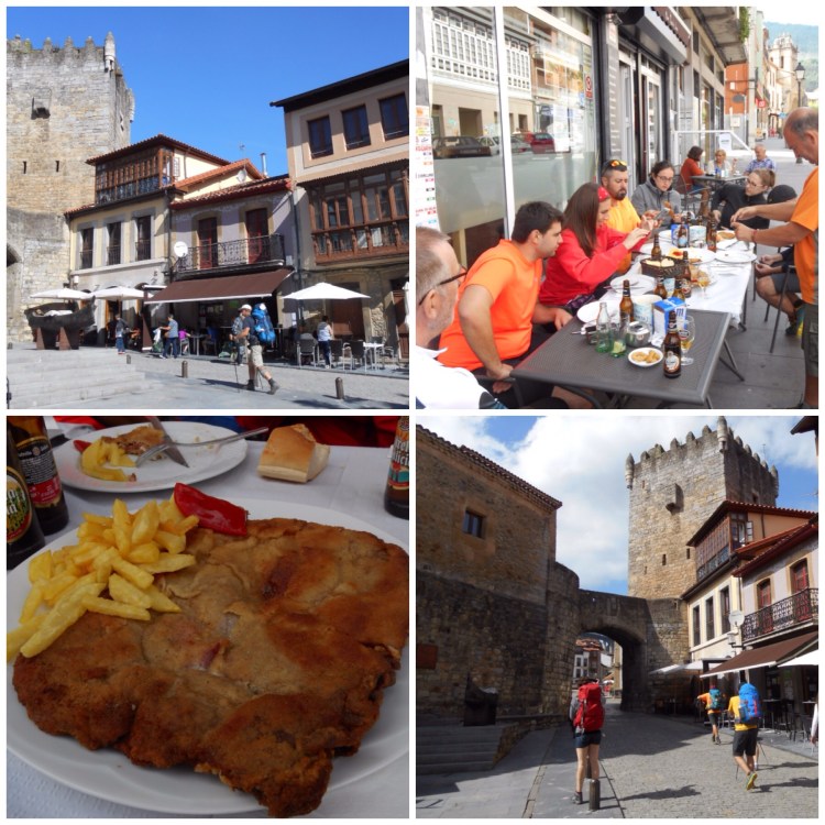 Sobre las 12 llego a Salas donde vuelvo a encontrar a Josué tomando una cerveza en un bar. Me uno a él y un rato después cambiamos a Casa Pachón, un sitio que recomiendan para comer todas las guías y foros del Camino Primitivo. Nosotros queríamos solo unas tapas porque su menú tiene fama de ser superabundante y nos quedaba aún una buena caminata para llegar al albergue que sería dura de hacer después de una comilona. Pero cuando ya teníamos las cervezas en la mano nos hemos enterado que solo se podía comer el menú así que decidimos tomar esas cervezas en Casa Pachón y luego ya buscaríamos donde comer unas tapas. Mientras, han ido llegando otros de los que habían dormido en nuestro albergue. Nos juntamos seis o siete primero y varios más que han aparecido después y acabamos comiendo unos cachopos en un bar, la especialidad asturiana hecha con dos filetes de ternera rellenos con jamón y queso y fritos empanados en huevo y pan rallado. Una cosa ligerita… Entre unas cosas y otra he pasado casi tres horas en Salas.