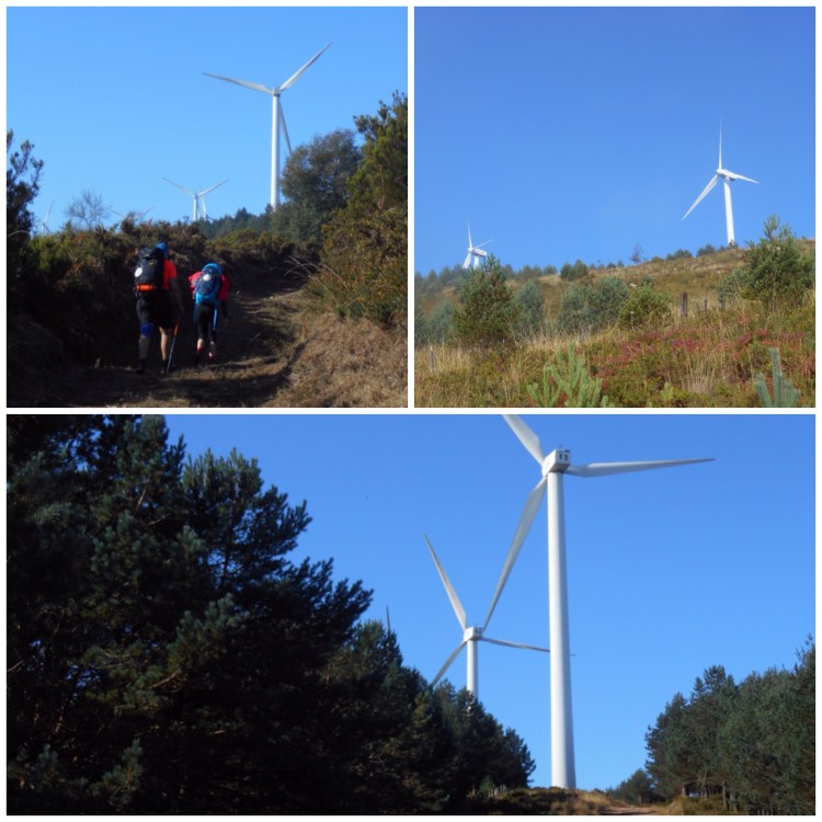 No es una ascensión muy dura y pronto estamos a la altura de los aerogeneradores que hace una hora nos parecían casi inalcanzables y, sin prácticamente darnos cuenta, empezamos a bajar por el otro lado. No hay nada que lo indique pero se supone que hemos superado el Puerto del Acebo.