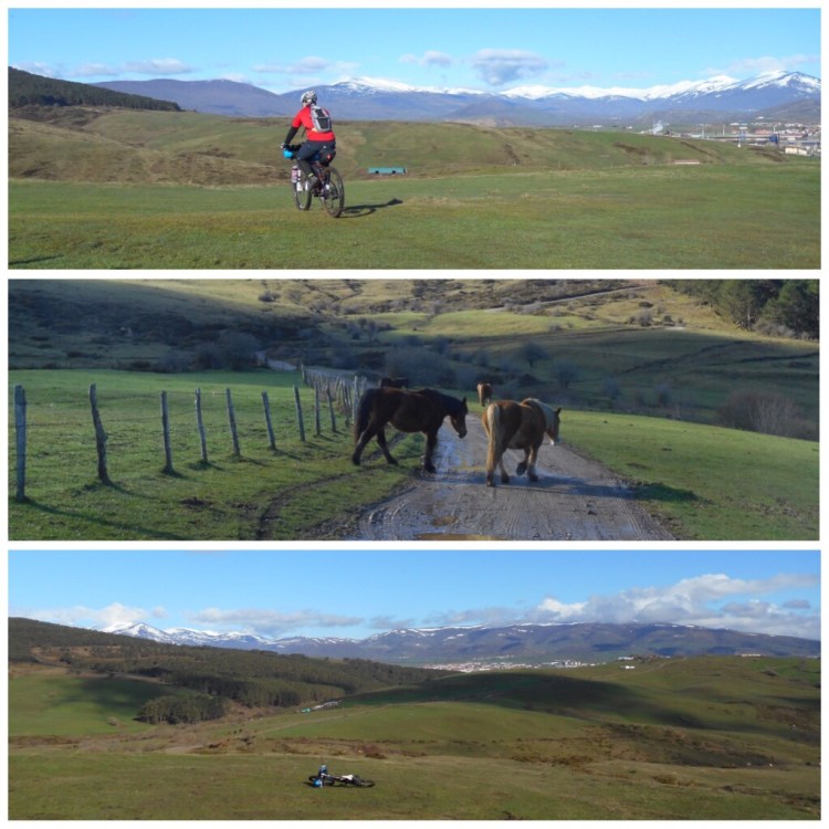 Entre Arroyo y el siguiente pueblo, Bustasur, se pasa por un tramo que me ha dejado destrozado. Hay que descender por un cortafuegos -literalmente- hasta cruzar un arroyo, y después subirlo por el otro lado. Estaba tan embarrado que hasta caminando resbalaba y, no hace falta decirlo, todo el ascenso he tenido que arrastrar la bici. He llegado agotado. Además, así como el ascenso a El Cotío es duro pero se disfruta y se entiende que el GR pase por ahí, en este caso el esfuerzo parece absurdo. No sé a quien se le ocurre marcar la ruta por este cortafuegos, seguro que hay mejores alternativas.