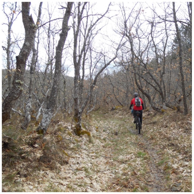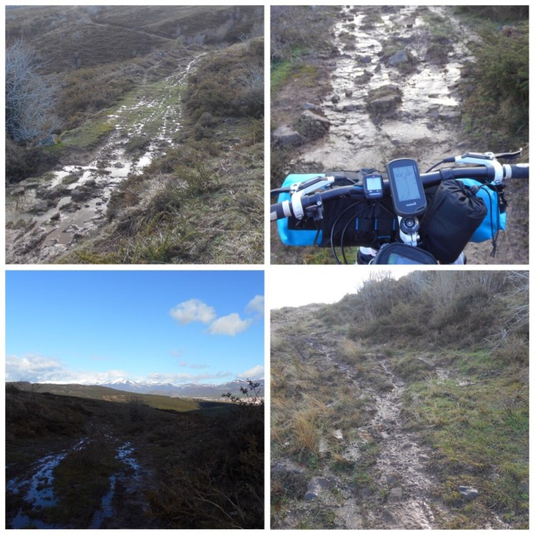 Mas arriba empiezan las complicaciones cuando el sendero se convierte en un barrizal. El camino ya es complicado de por si, y con el fango se hace prácticamente impracticable en muchos tramos. He tenido que empujar la bici durante muchos metros y la ascensión se hacía interminable.