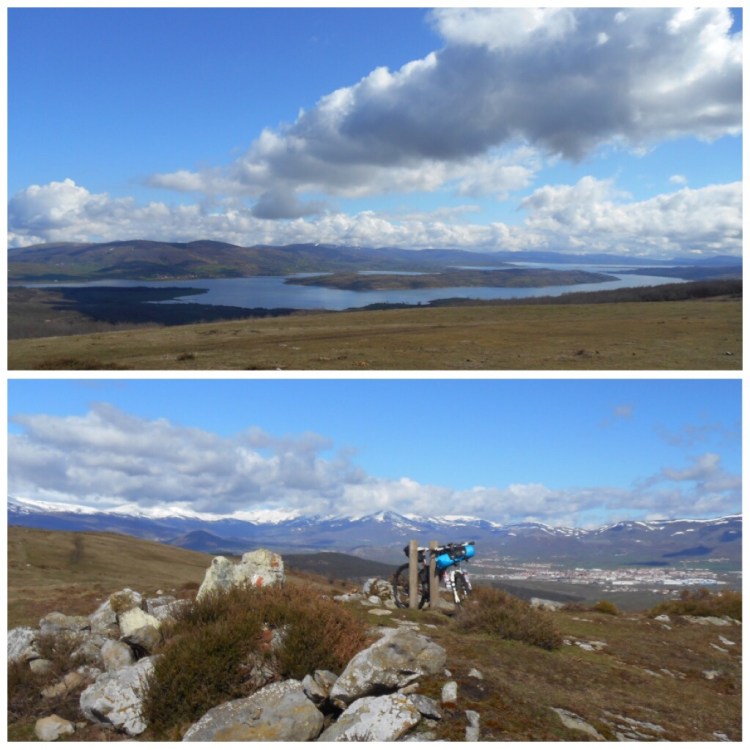Y, por fin, la cumbre de El Cotío. El panorama que se contempla es impresionante, por un lado el Embalse del Ebro y por otro las cumbres nevadas de los montes cántabros. He llegado con la lengua fuera pero ha valido la pena.