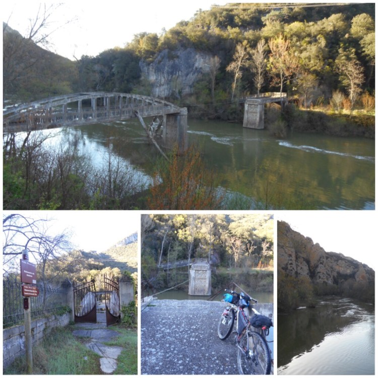 Nada mas arrancar por la mañana, la primera anécdota del día: el GR abandona Baños de Sobrón, donde he dormido, cruzando al otro lado del río para seguir por allí el camino. Empiezo a cruzar y… ¡falta medio puente! No hay ninguna advertencia, las señales del Camino Natural del Ebro marcan claramente que es por ahí, no hay valla de protección… simplemente avanzas y el puente queda cortado en el vacío, ¡para matarse!