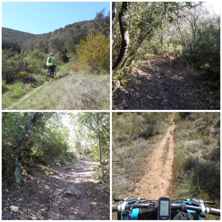 Pero si en Ircio estaba el balcón, todavía faltaba subir a la azotea. Tras cruzar el pueblo se inicia el ascenso al collado Gobera por un camino que al principio parecía fácil pero luego se vuelve senda pedregosa y resbaladiza a través de un bosque. En gran parte no era ciclable así que ha tocado una vez mas arrastrar la bici cuesta arriba.