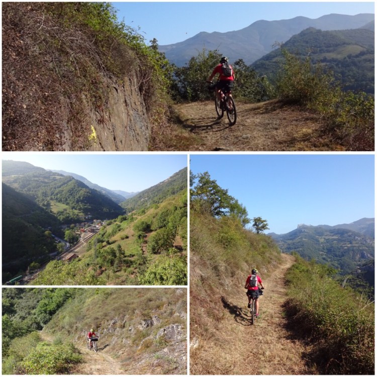 O a veces ni siquiera hace falta que haya ningún alto, simplemente el camino sube y baja porque el terreno es accidentado, acumulando desnivel sin necesidad de ascender ningún puerto de renombre. Es el caso de los primeros quince kiloómetros de hoy. Por senderos interminables en la ladera de la montaña vamos avanzando lentamente a causa de las subidas y bajadas constantes y porque en muchas ocasiones el terreno es tan pedregoso que es dificilmente ciclable.