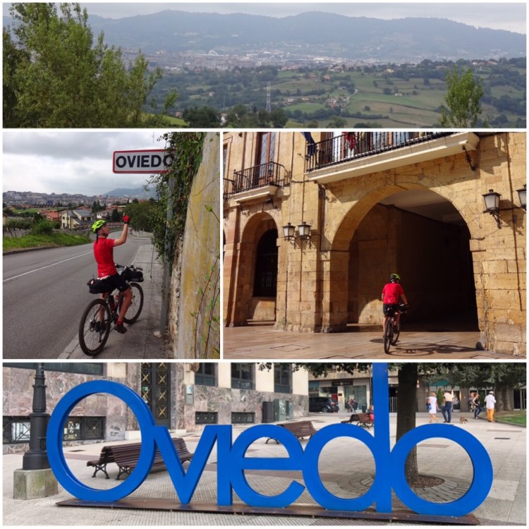 Y por fin, ¡Oviedo! Parecía que no llegábamos nunca. La vemos de lejos desde la zona de Caxigal y rápidamente descendemos y entramos en sus calles. Seguimos las señales del Camino como podemos, siempre es dificil en las grandes ciudades, y llegamos finalmente al centro histórico.