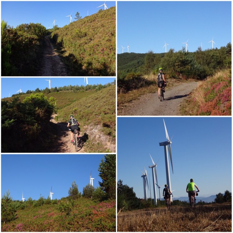 Empezamos ganando altura por pistas forestales y enseguida dejamos atrás Penafonte, la última aldea asturiana que atravesaremos. Como en muchos otros puertos que subimos en este y otros caminos de Santiago, la presencia de aerogeneradores nos indica el punto más alto al que debemos llegar.