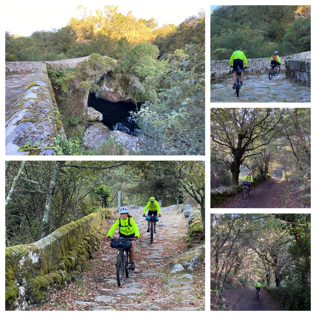 Después de un buen desayuno, salimos de Lalín por un precioso paseo fluvial siguiendo el río Pontiñas. Son las ocho de la mañana y hace bastante frío. Seis kilómetros después pasamos por A Laxe, donde el Camino de Invierno se junta con la Vía de la Plata. O más propiamente con el Camino Sanabrés, el ramal que se separa de la Via de la Plata en Granja de Moreruela para dirigirse a Santiago pasando por Ourense, y que recorrí en mi camino desde Sevilla en 2014.