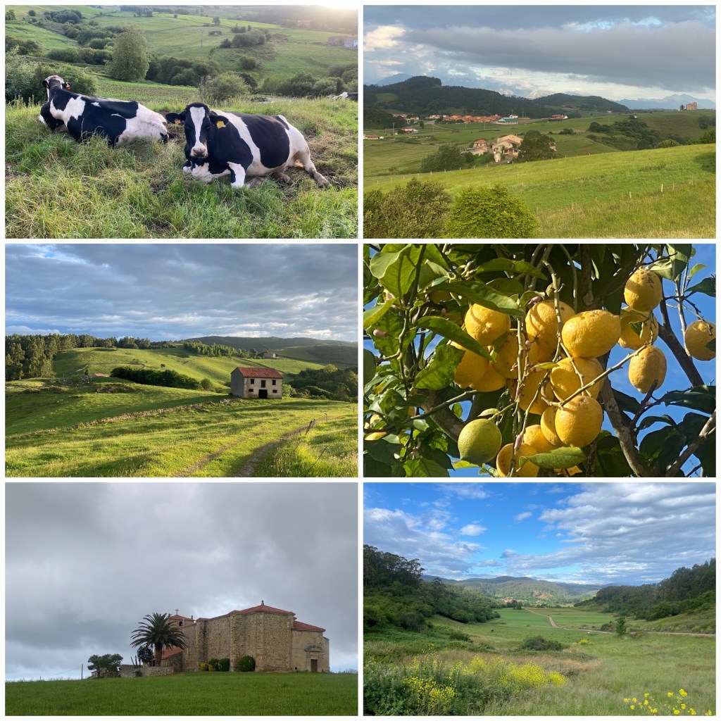 Dejo atrás las calles empedradas de Santillana del Mar para recorrer por carreteras locales sin apenas tráfico los primeros 9 km del día hasta Cigüenza. Se pasan algunos pequeños pueblos y las enormes iglesias de San Pedro de Oreña, aislada en lo alto de un cerro, y San Martín de Tours. El paisaje es típicamente rural, con prados y vacas pastando, y poco urbanizado. En Cigüenza hay algunas casas antiguas blasonadas.