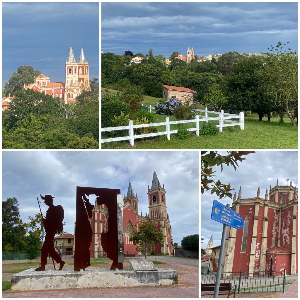 Después paso por Cóbreces, dominado por la enorme iglesia neogótica de San Pedro Ad Vincula de un estilo totalmente diferente a las habituales de la zona y junto a la cual paro a descansar un rato. Han caído algunas gotas en algún momento pero ahora hace calor. De hecho el tiempo cambiaría constantemente el resto del día hasta acabar lloviendo fuerte poco antes del final de la etapa.