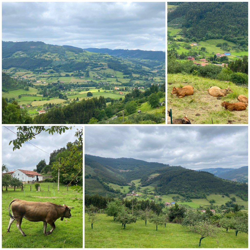 Pasado Casquita se abandona el asfalto para empezar a ascender por una pista entre bosques y pastos siguiendo el valle del río Valdedios. Después un tramo final de asfalto me lleva hasta la aldea de Niévares.