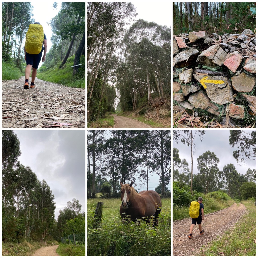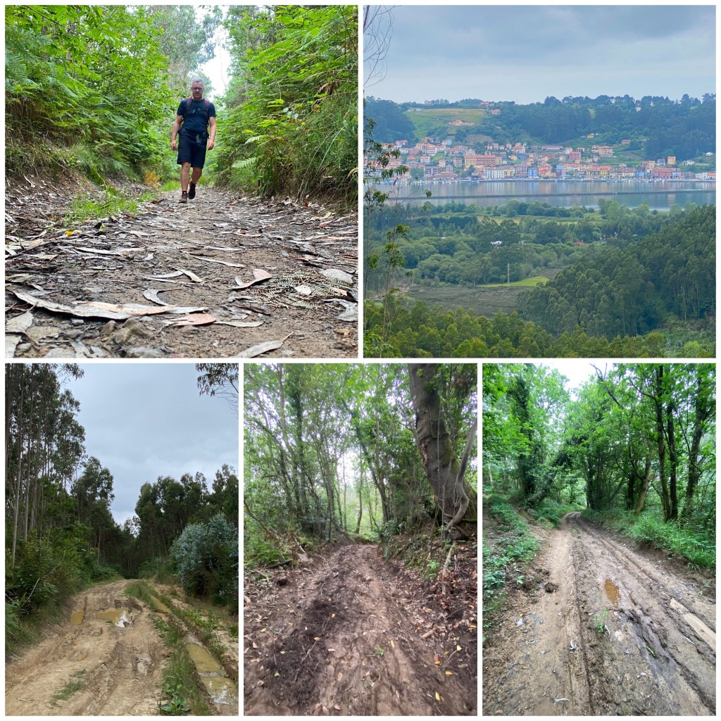 A la salida de Piedras Blancas se empieza subiendo por una carretera hasta llegar a un barrio aislado llamado El Muro desde el que se inicia un tramo más agradable por pistas forestales que pasan también por alguna explotación ganadera.