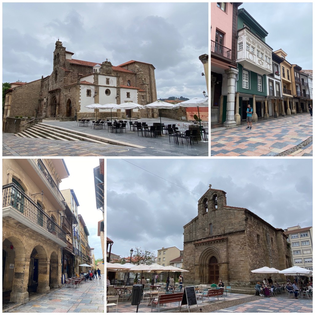 Y por fin entro en Avilés y llego a su casco antiguo. Aquí tenía previsto terminar la etapa, de unos 25 km. Pero eran poco más de las 13 h., el albergue no abría hasta las 16 h., y para mañana tenía previsto casi 45 km. Lo ideal sería hacer hoy algo más y repartir mejor las dos etapas pero el gran problema es que en los siguientes 25 km no hay ningún sitio para dormir. En San Martín de Laspra, 13 km después de Avilés, hay un buen albergue pero llamé ayer y está cerrado hasta el 1 de julio, ¡faltan solo cinco días! Y en Salinas, el único lugar intermedio en el que hay hoteles, todo está lleno ya que es un sábado de finales de junio y es un municipio costero. Así que la decisión es quedarse en Avilés o seguir hasta Muros de Nalón, primera población con alojamientos a 23 km de aquí, lo que hará que la etapa de hoy sea de 50 km. Un factor importante ha decantado la decisión y es que hoy el cielo está gris pero no llueve y para mañana hay previsión de chubascos, así que mejor avanzar hoy el máximo posible…