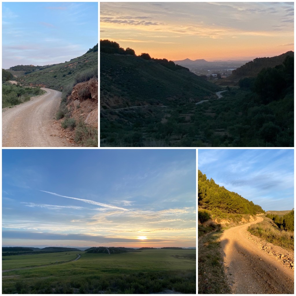 Mientras el sol va levantándose a mis espaldas encaro el fuerte ascenso por una pista de tierra que hay a la salida de Fraga. Esta subida, de unos 300 metros en 3 ó 4 kilómetros, me aleja de las fértiles llanuras de Fraga y me sitúa en el altiplano elevado y semidesértico de Los Monegros.
