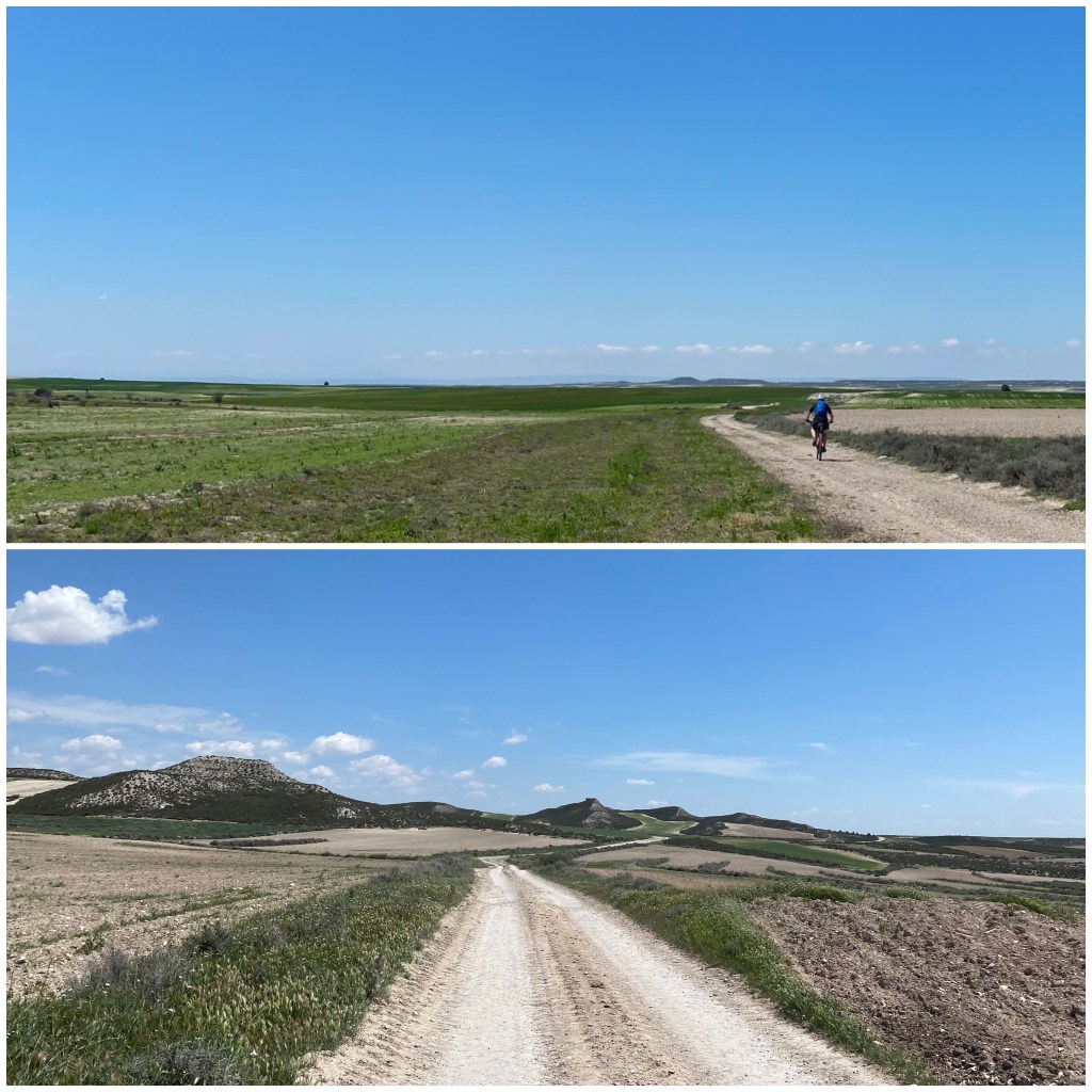 El enorme problema del día ha sido el viento. En esta zona sopla el cierzo, un fuerte viento fresco y seco del noroeste que recorre el valle del Ebro en Aragón, La Rioja y Navarra debido a la diferencia de presión entre el Cantábrico y el Mediterráneo. Y hoy no ha parado en todo el día. Y no solo eso sino que ha ido subiendo de intensidad a medida que avanzaba la jornada complicando enormemente el avance con la bicicleta.