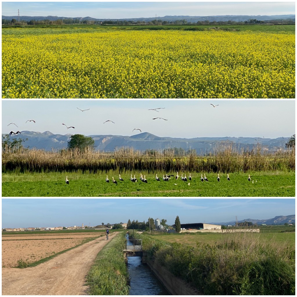 El siguiente pueblo por donde paso es Cabañas de Ebro. Aquí vuelvo a estar a la orilla del río ya que, aunque siempre estaba presente y cerca, no había vuelto a verlo desde la salida de Zaragoza. Los siguientes kilómetros voy atravesando pequeños núcleos como Alcalá de Ebro y Luceni circulando de uno a otro por caminos de tierra. En este tramo coincido con el GR 99 y también con una ruta cervantina ya que en algunos de estos pueblos Cervantes sitúa episodios del Quijote.