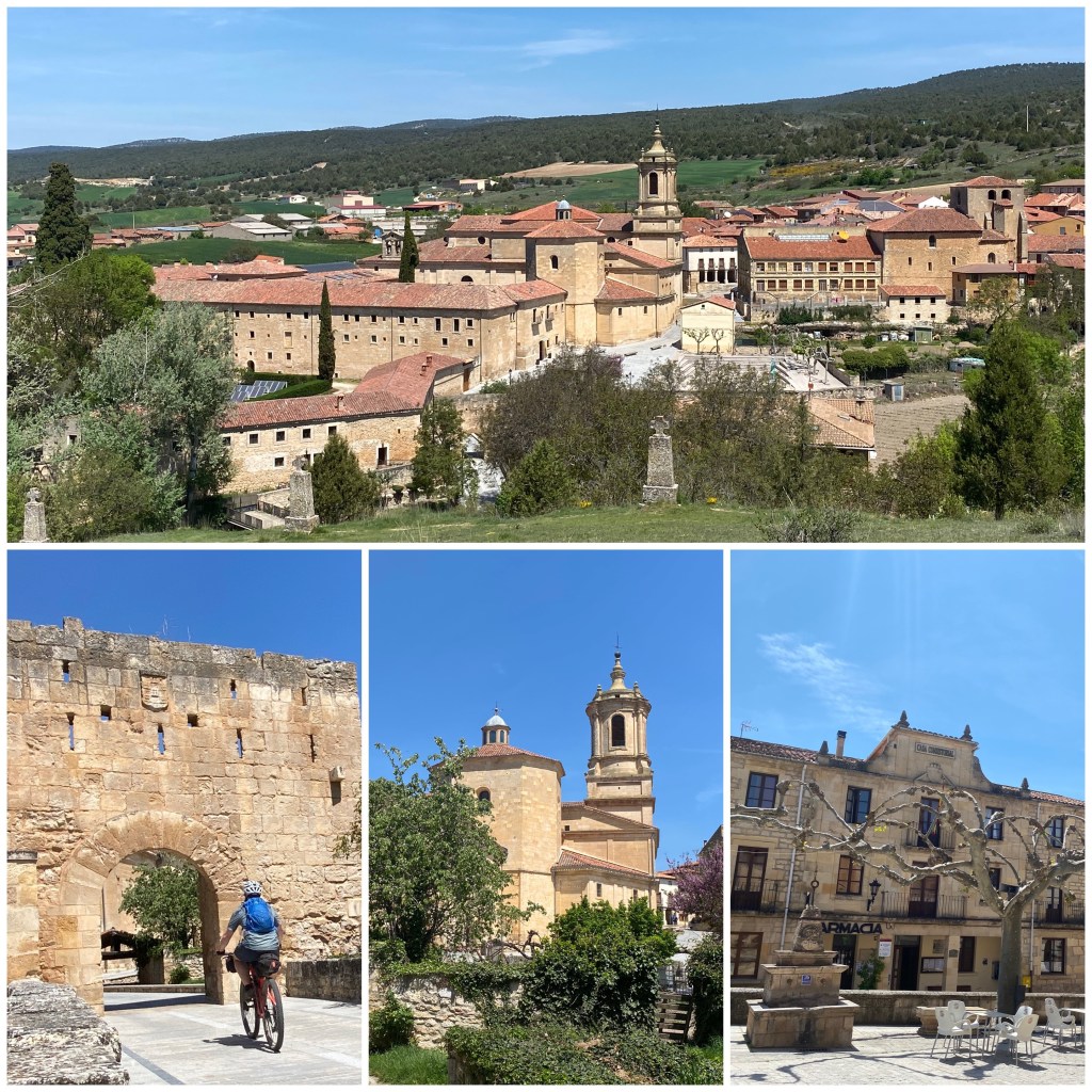 El itinerario, tras cruzar el río Arlanza, entra en Covarrubias, una villa histórica con un casco antiguo medieval que según reza en un cartel a la entrada está declarado “uno de los pueblos más bonitos de España”. Aprovecho para rehidratarme en un bar porque hace mucho calor.