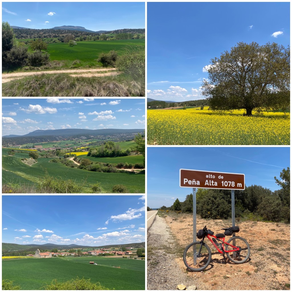 Mis primeros 23 kilómetros por la Ruta de la Lana entre Santo Domingo de Silos y Mecerreyes son prácticamente todos por la carretera BU-901, excepto un tramo inicial por pistas agrícolas. Se me ha hecho particularmente dura la subida por asfalto al alto de Peña Alta con el sol de las dos de la tarde cayendo a plomo.
