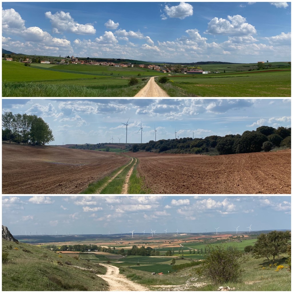 Paso Hontoria y por el mismo tipo de pistas agrícolas por un área relativamente llana continúo hasta Revillarruz.