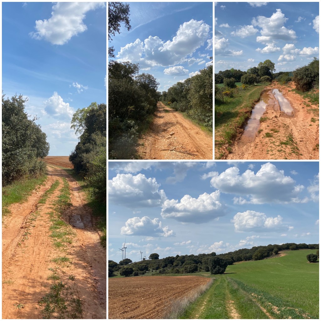 Hay zonas en las que las profundas marcas de tractores y camiones en el suelo dejan claro que después de llover pueden complicarse mucho. Afortunadamente hoy, salvo tramos muy puntuales que se pueden esquivar fácilmente, no hay prácticamente barro.