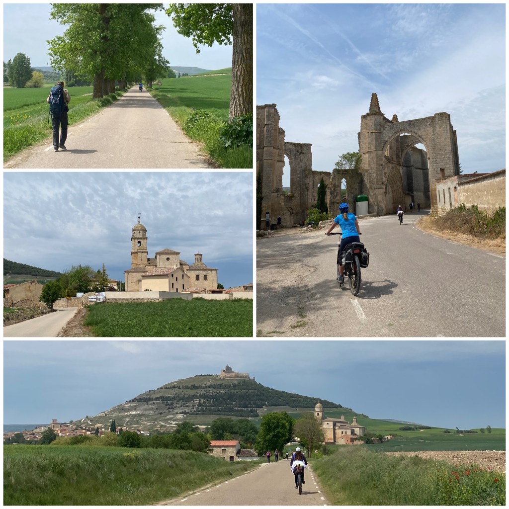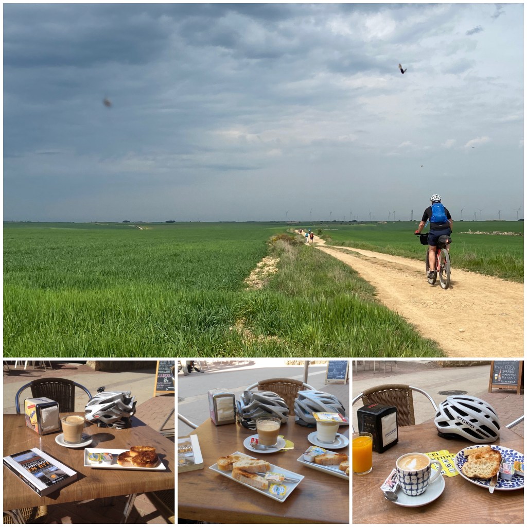 Tras unos treinta kilómetros por pistas agrícolas entre campos de cereales y pasando por algunos pueblos como Tardajos, Rabé de las Calzadas o Hornillos del Camino llego a Hontanas donde paro a desayunar. Cuando hice el Camino Francés en 2015 con mi hija Blanca por casualidad paramos en el mismo bar y nos sentamos en la misma mesa en la que había estado en mi primer camino en 2013. Medio en broma establecimos que había que repetir siempre que alguien pasara por aquí. Pues aquí estoy, siete años después. Las mismas mesas siguen en el mismo sitio.