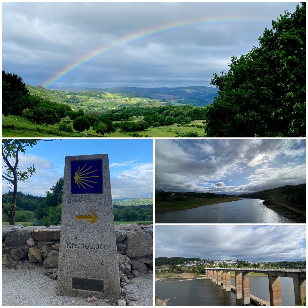 Cuando llevaba hechos 22 kilómetros llego a Portomarín tras cruzar el embalse de Belesar en el río Miño. Instantes antes, mientras descendía hacia el puente, una ligera lluvia a la vez que lucía el sol me regala un bonito arco iris.
