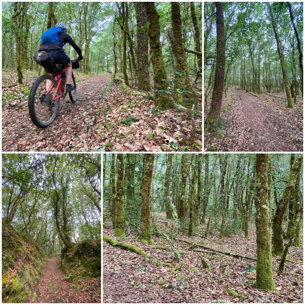 Después esta ruta alternativa se empieza a alejar del río ascendiendo por un sendero a través de un bosque precioso. Tiene algún tramo en el que hay que arrastrar la bici pero el sitio es mágico. Finalmente, tras cruzar un campo sembrado, se llega a la aldea de Zas donde confluye con el camino oficial.