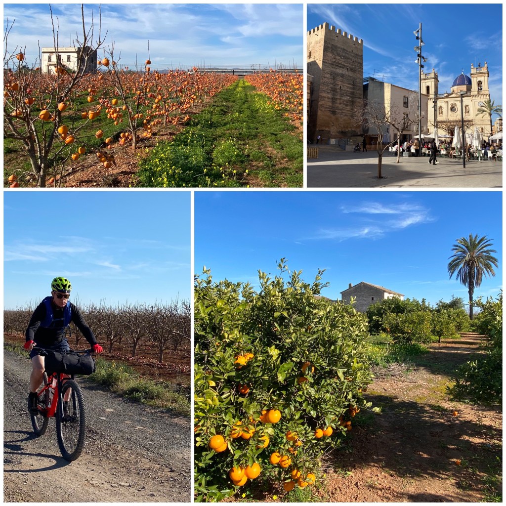 Tras salir del parque natural el camino se introduce en la comarca de la Ribera Alta, importante zona agrícola en la cuenca del río Júcar. Los siguientes diez kilómetros avanzo rodeado contantemente por campos de naranjos, caquis y mandarinas, en los que ocasionalmente se levanta alguna alquería, las casas de campo tradicionales.