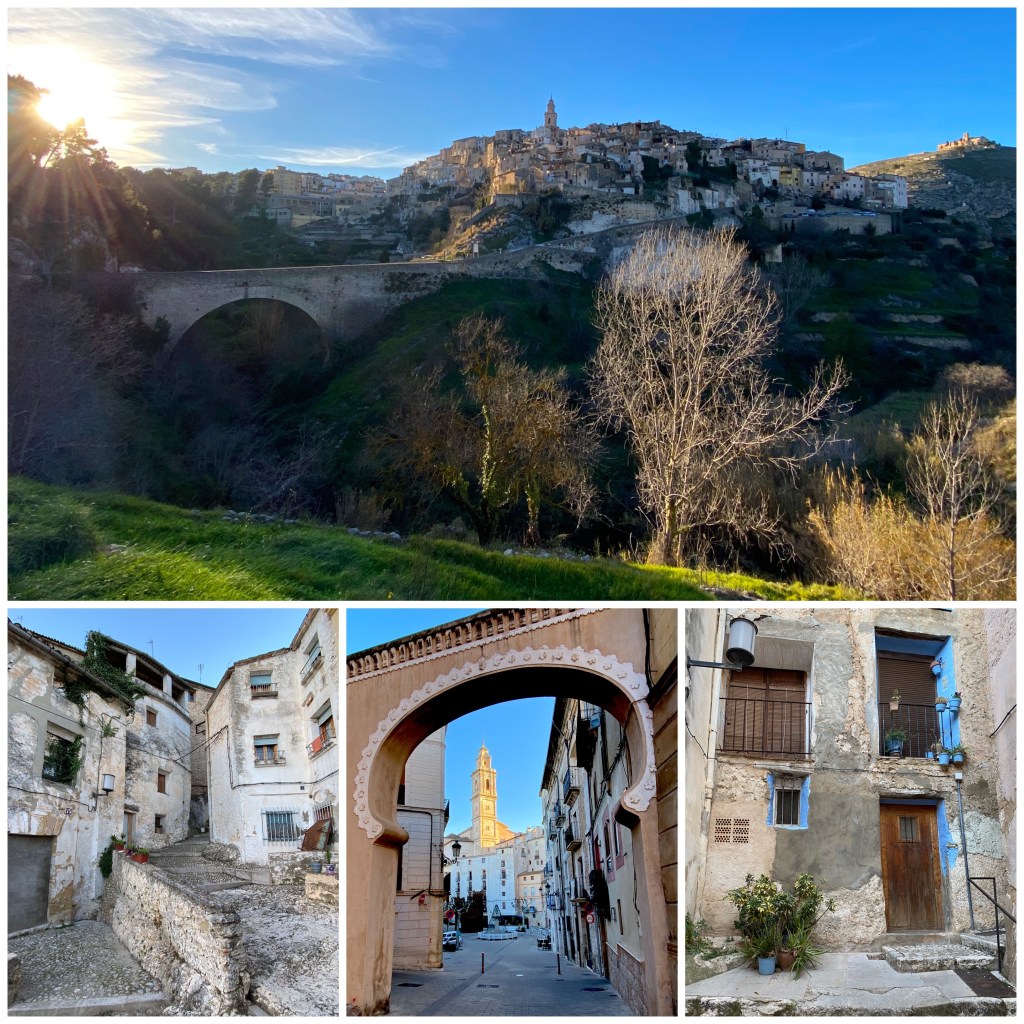 Enseguida llego a Bocairent, una de las poblaciones más bonitas de este itinerario. La primera imagen que me encuentro de la villa es preciosa, con el puente de piedra y las casas del casco antiguo medieval apiñadas en torno a una colina siguiendo la disposición típica de medina árabe que ya he visto en otros pueblos por los que he pasado estos días.