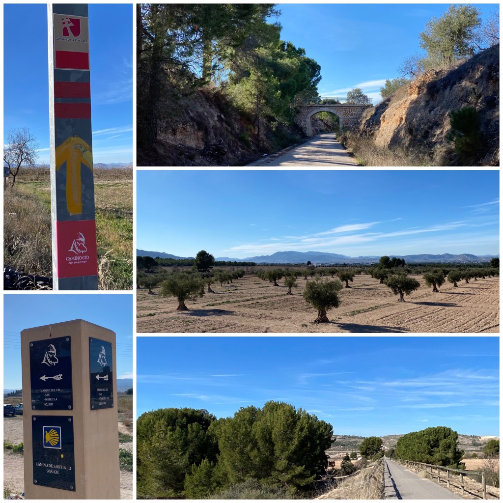 A la salida de Biar un par de kilómetros comodísimos, siempre en bajada, por un carril bici paralelo a una carretera y después se enlaza con la Vía Verde de la Xixarra, recorrido que aprovecha el trazado de la antigua línea de ferrocarril que unía Alcoy con Yecla (Murcia). Aquí coinciden señalizaciones del Camino del Cid con las del Camino de Santiago y las del Camino de la Vera Cruz, una serie de itinerarios señalizados para peregrinar a Caravaca de la Cruz, en Murcia.