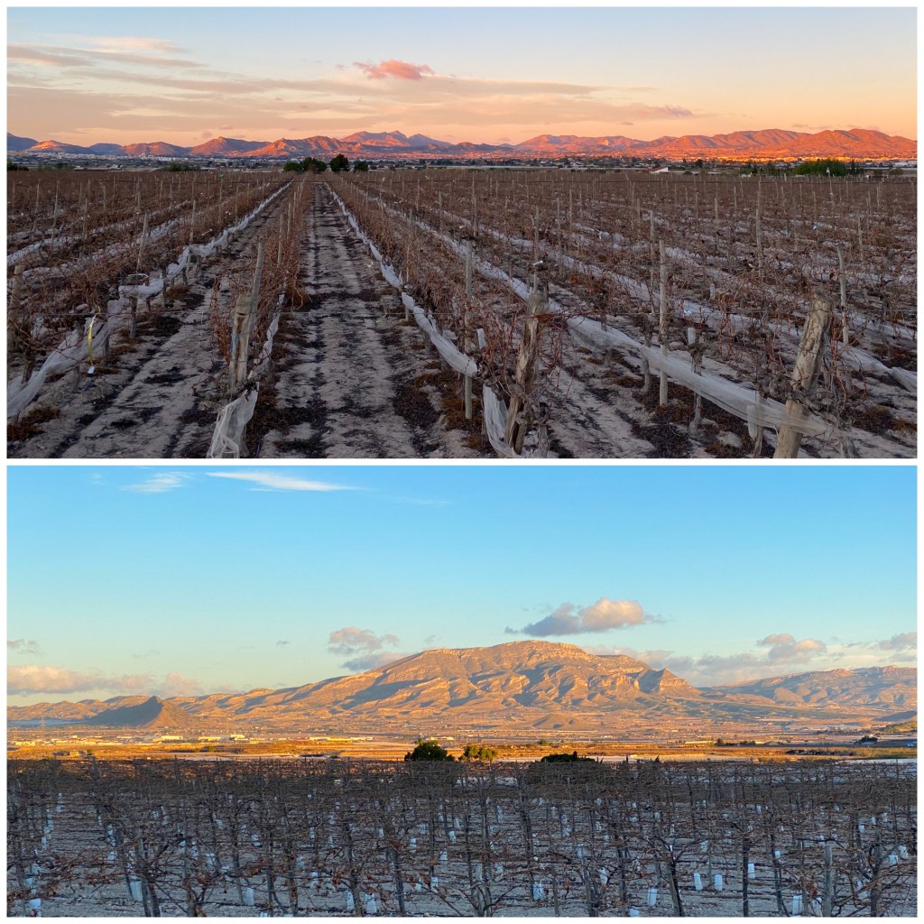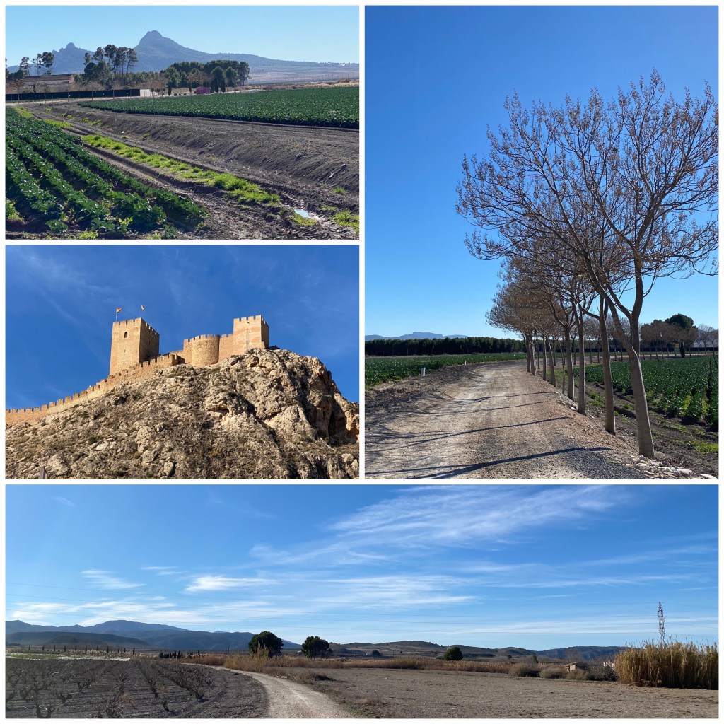 Salgo de Novelda y un par de kilómetros después paso por Monforte del Cid, bordeando la población pero sin llegar a entrar en su casco histórico. Desde Monforte por caminos asfaltados y de tierra se inicia el único ascenso del día, entre viñas de la denominación de origen Uva del Vinalopó. Aunque no está clara la autenticidad de la historia, se cree que fue precisamente en esta zona donde en 1909 se produjo una cosecha tan excepcionalmente abundante que para aumentar el consumo los viticultores decidieron promocionar la ingesta de las “uvas de la suerte” con las 12 campanadas de Nochevieja, creando una tradición que ha perdurado hasta nuestros días.