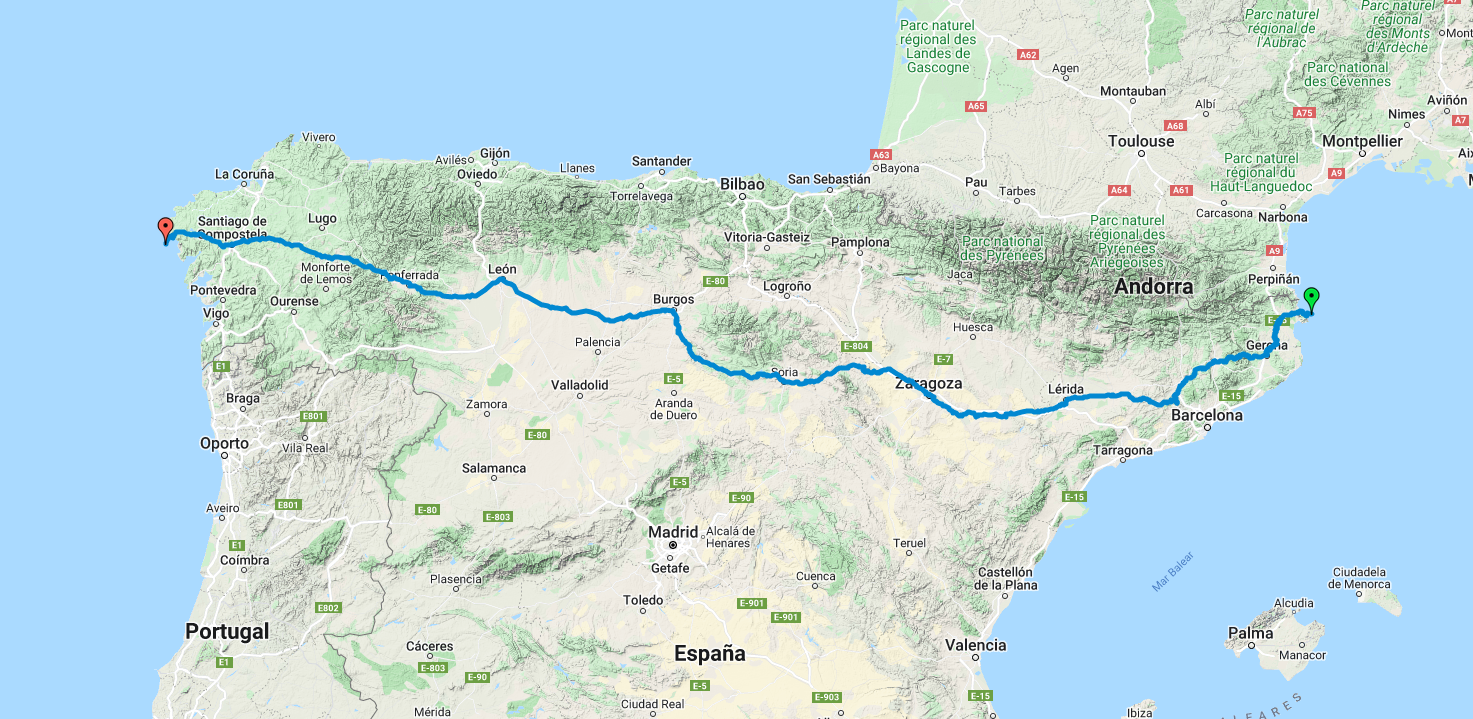Diez meses después de terminar el Camino del Norte a pie empiezo mañana un nuevo Camino de Santiago, esta vez en bicicleta de montaña (BTT). Me he propuesto partir del Cap de Creus y enlazar diversas rutas jacobeas hasta terminar en Fisterra, uniendo el punto más oriental de la Península Ibérica (no de España, ya que éste sería la Punta de S’Esperó en la península de La Mola de la isla de Menorca) con el simbólico «final de la tierra», el que los romanos consideraban el punto más occidental del mundo conocido (aunque hoy en día sabemos que el Cabo Touriñan en Galicia es el punto más al oeste de la España peninsular y que si nos referimos a toda la Península Ibérica el punto más occidental es el Cabo da Roca, en Portugal).