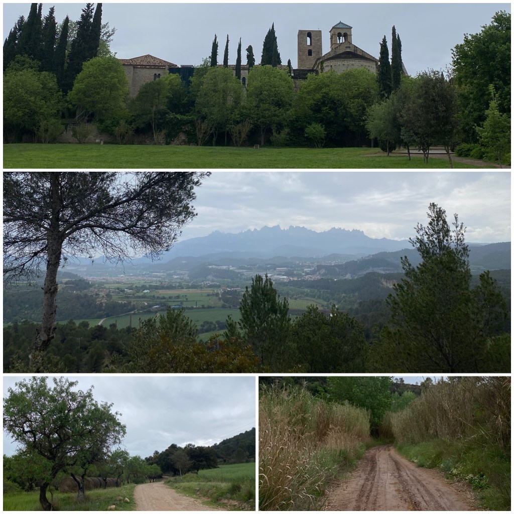 El Camí de Sant Jaume deja el monasterio siguiendo una carretera que avanza a media ladera de la montaña hacia el collado de Can Maçana. De hecho toda la etapa de hoy se caracterizará por ser mayoritariamente por asfalto, prácticamente el 95% del recorrido. Poco después de empezar se pasa por la pequeña abadía de Santa Cecilia que en realidad es el primer monasterio que se fundó en la montaña de Montserrat en el siglo X y dio origen al conjunto monacal actual.