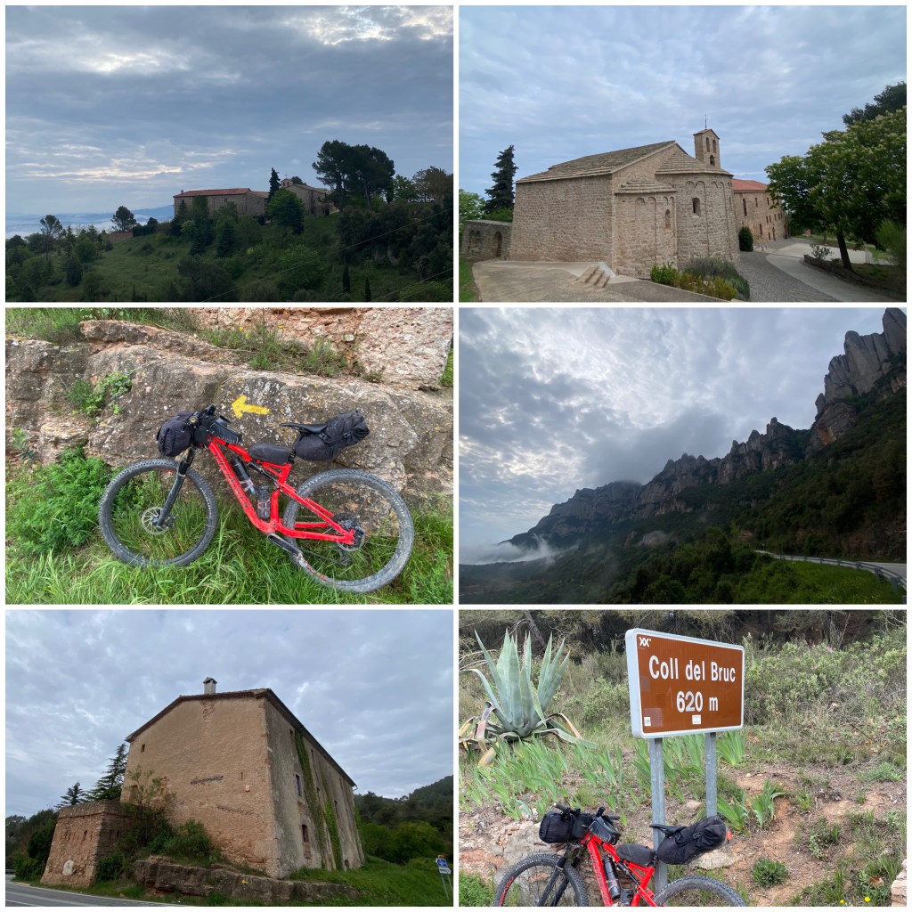 Desde aquí empiezan por fin los últimos kilómetros de subida, todos por asfalto, que hago penosamente porque estoy realmente muy cansado. Poco a poco voy ganando altura, dejo atrás el pequeño monasterio de Sant Benet, de monjas benedictinas, y finalmente llego al monasterio de Santa María de Montserrat, un lugar emblemático con una dimensión religiosa, cultural, política e histórica además de la puramente paisajística y de la deportiva. Me hace especial ilusión acabar aquí la etapa y pernoctar, algo que no hacía desde hace más de 30 años, en mis tiempos de escalador, cuando a menudo vivaqueábamos tirados por el suelo en los alrededores del monasterio. Al menos hoy, aunque sea en un albergue, tengo una cama…
