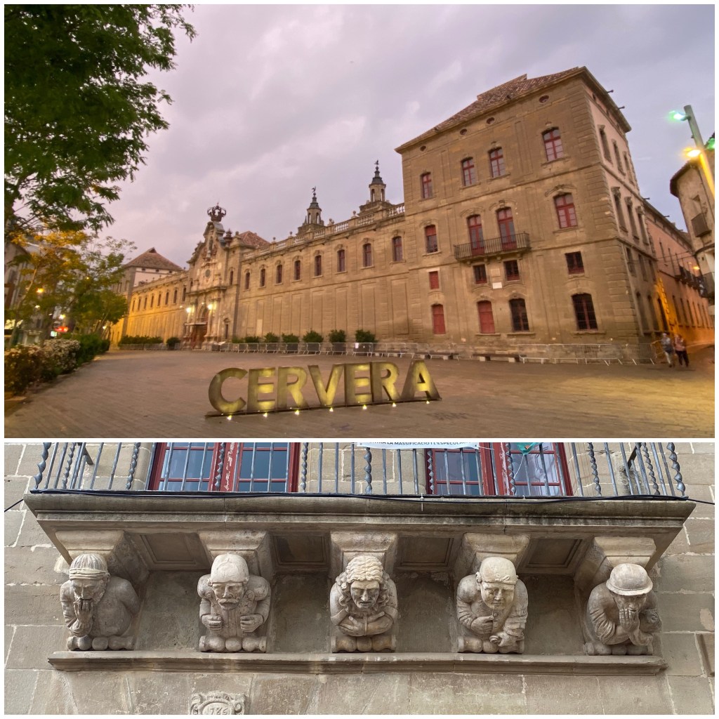 Cervera tiene un bonito centro histórico en el que destaca el edificio de la antigua universidad frente al cual me alojo y termino una etapa más.