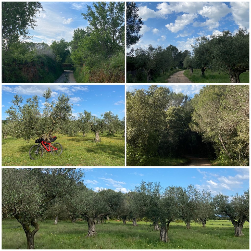 Pasado Creixell se inicia un corto ascenso algo más exigente a través de un bosque, cambiando momentáneamente de paisaje. En este mismo tramo se cruza un olivar precioso.