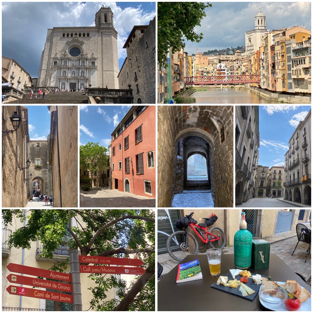 Una vez en la ciudad entro en el casco antiguo y, tras cruzar frente a la catedral, paro en un bar a comer algo. Después cruzo el río Onyar por el Pont de Pedra y me dirijo al parque de la Devesa en cuyo extremo se inicia la vía verde del Carrilet por donde prosigue el Camino de Santiago.
