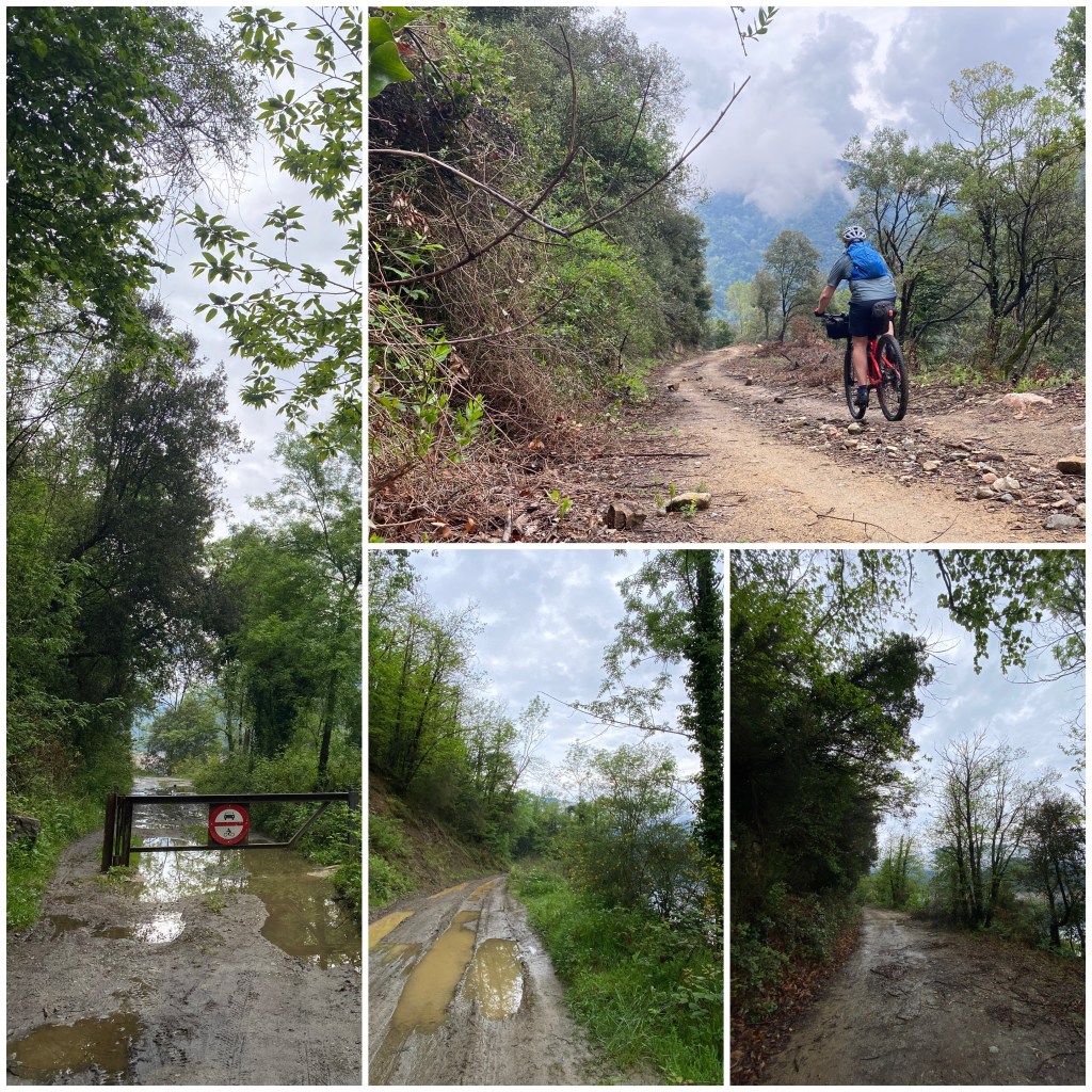 Desde aquí toca descender de una forma tan abrupta como lo ha sido el ascenso. Al principio son pistas y senderos por los que se puede bajar casi sin hacer ningún esfuerzo pero luego se complica y hay tramos muy difíciles con una bici cargada. Con el cansancio acumulado he de mantenerme muy concentrado para no acabar rodando por el suelo.
