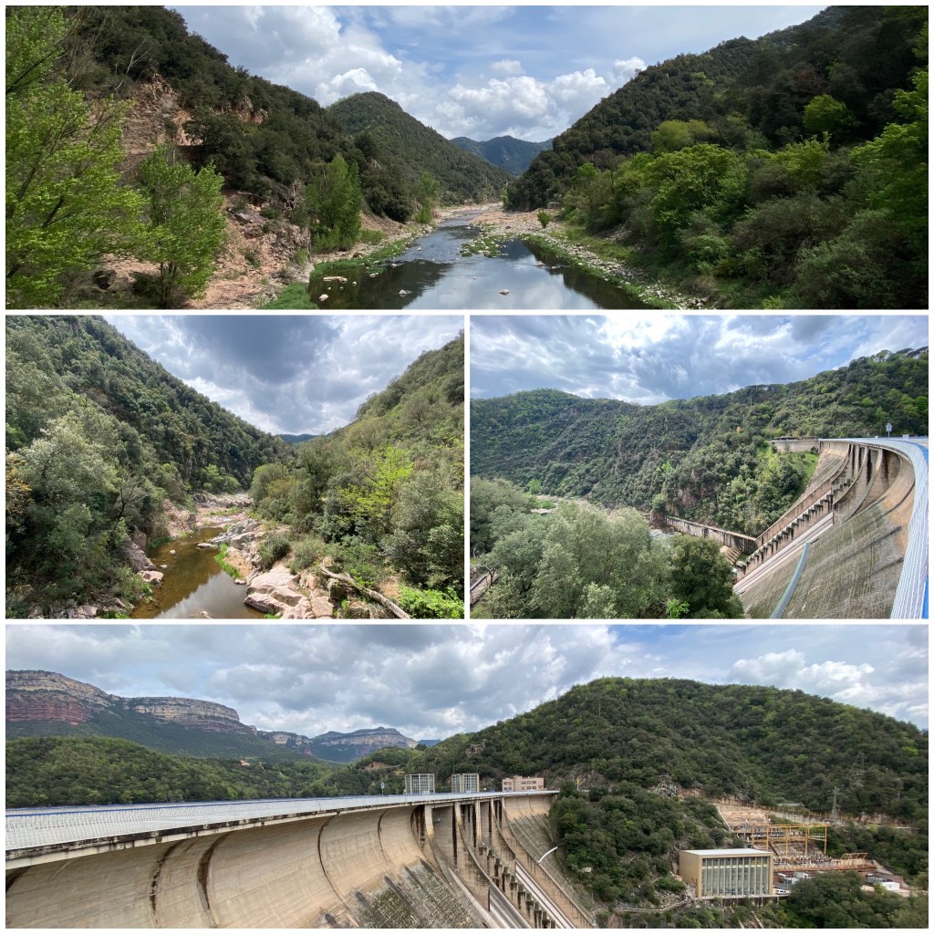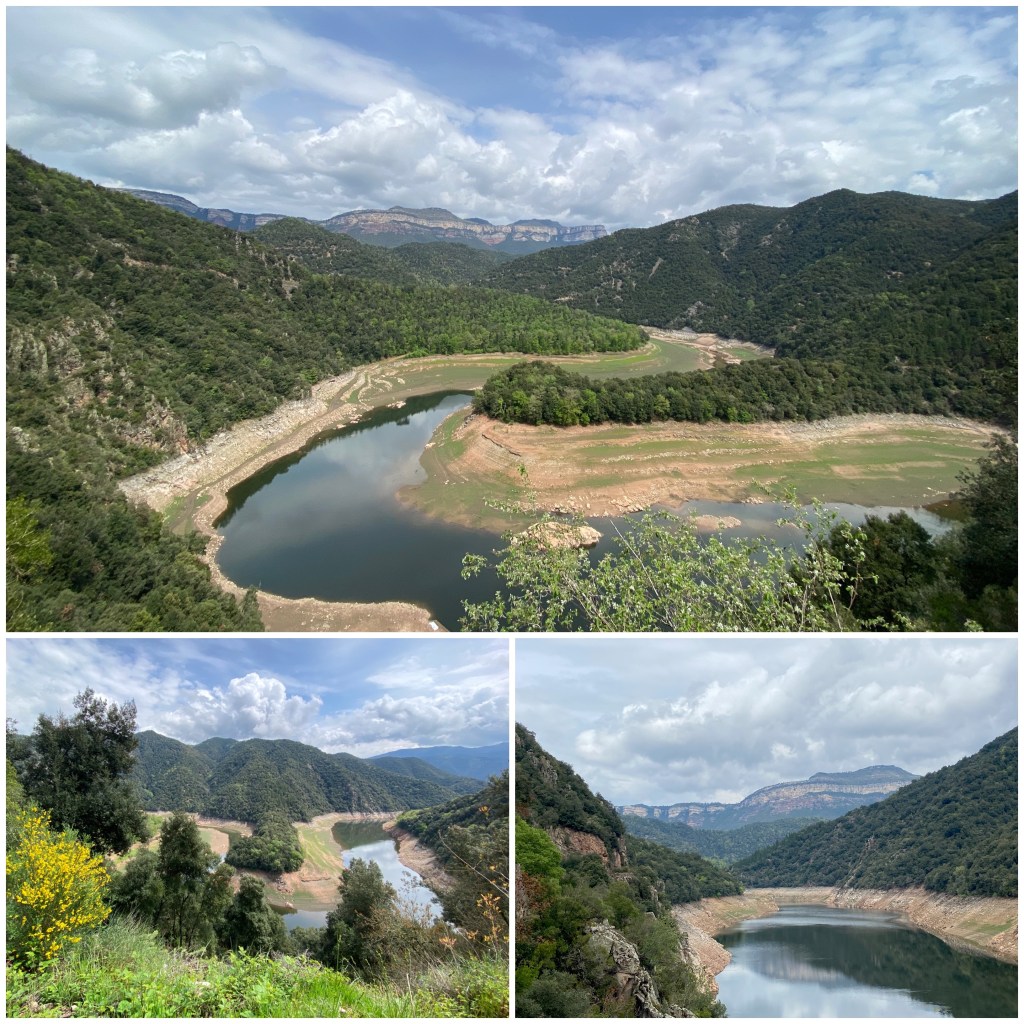 Así que pasado el núcleo de El Pasteral abandono la vía verde y empiezo a bordear el pantano por la carretera de servicio a las centrales hidroeléctricas. Éste es el más pequeño de los tres embalses en línea construidos en esta zona aprovechando que el río Ter se abre camino por un valle muy estrecho encajonado entre dos macizos montañosos, al norte el Collsacabra y al sur Les Guilleries.