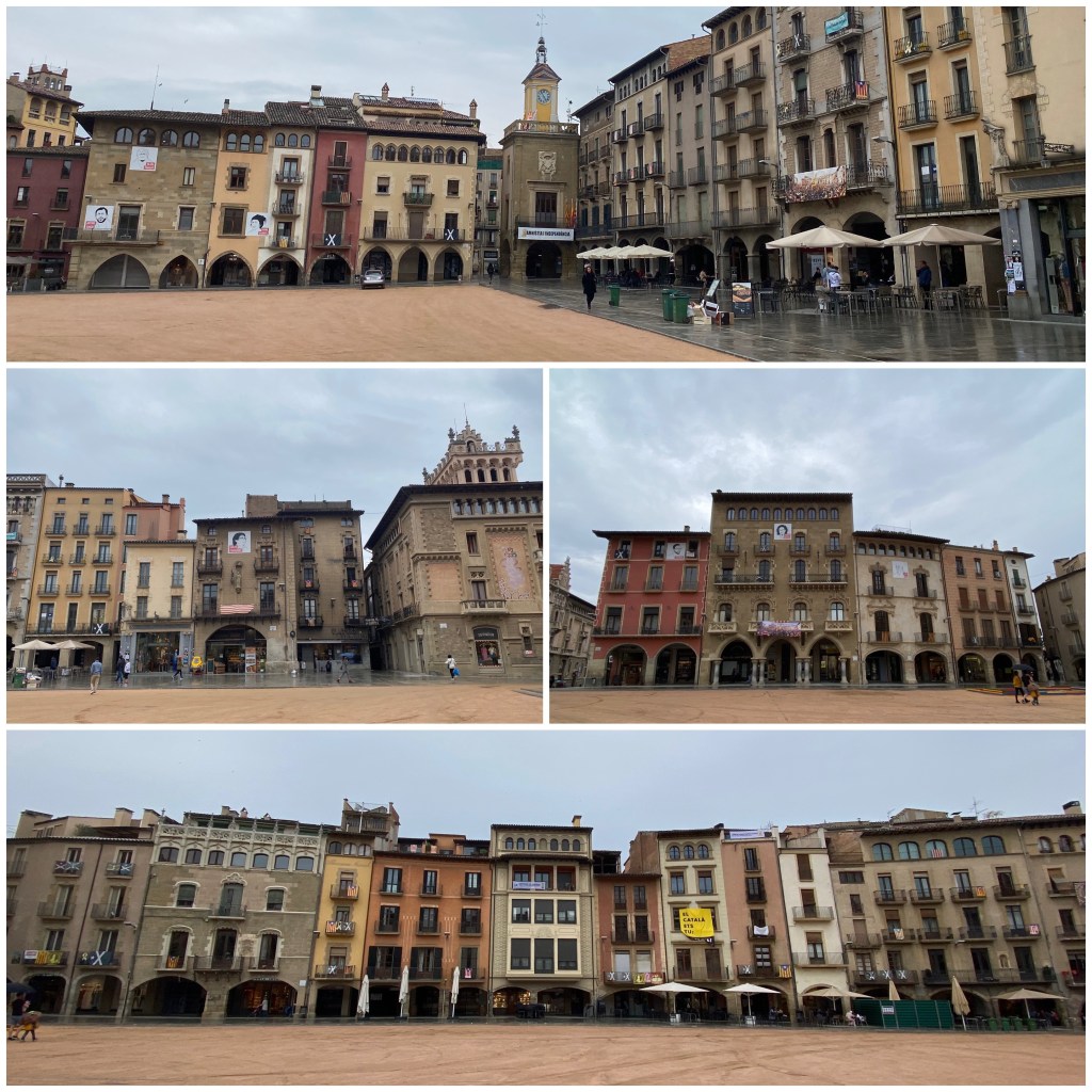 Desde Folgueroles unos kilómetros más, siempre por asfalto y bajo la lluvia, y entro finalmente en Vic donde acabo la etapa en su enorme plaza Mayor porticada.