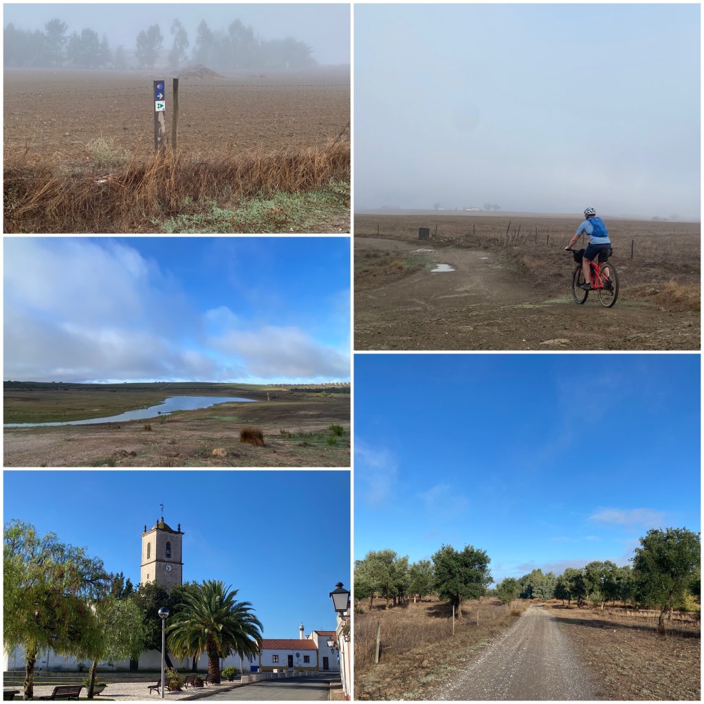 Continúo kilómetros y kilómetros cruzando la gran llanura alentejana. Sigue siendo muy bonito, aunque a base de repetirse es algo monótono, pero los desniveles son moderados y se avanza bastante rápido.