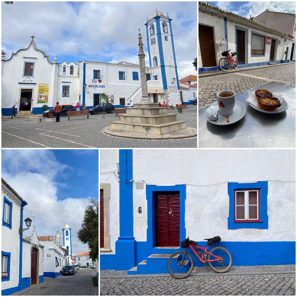 Así, entre pastos, llego a Messejana, donde paro a tomar un café. Es una agradable localidad en cuya plaza principal se alza una “picota”, la columna que simbolizaba la jurisdicción feudal y en la que eran torturados y expuestos los criminales. Como en todas las localidades que atravieso, las casas son mayoritariamente blancas y con franjas de color enmarcando puertas, ventanas y los límites de la fachada. Aquí predomina el azul, pero en muchos municipios cada casa tiene un color diferente.