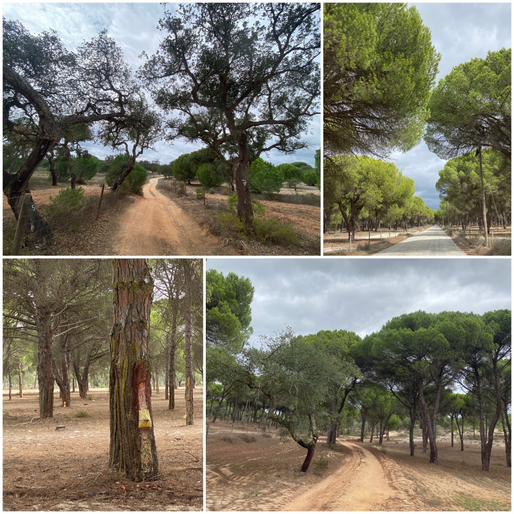 Enseguida mejora y empiezo a cruzar enormes plantaciones de pinos. Me preguntaba para que servía tanto pino cuando veo que cada uno tiene en el tronco una bolsa en la que se recolecta resina. Leo después que de la colofonia, que es como se denomina técnicamente la resina de pino, se extraen materias primas para la fabricación de ceras, pinturas, tintas, disolventes y unas cuantas cosas más, ¡ahora entiendo por qué tanto pino!