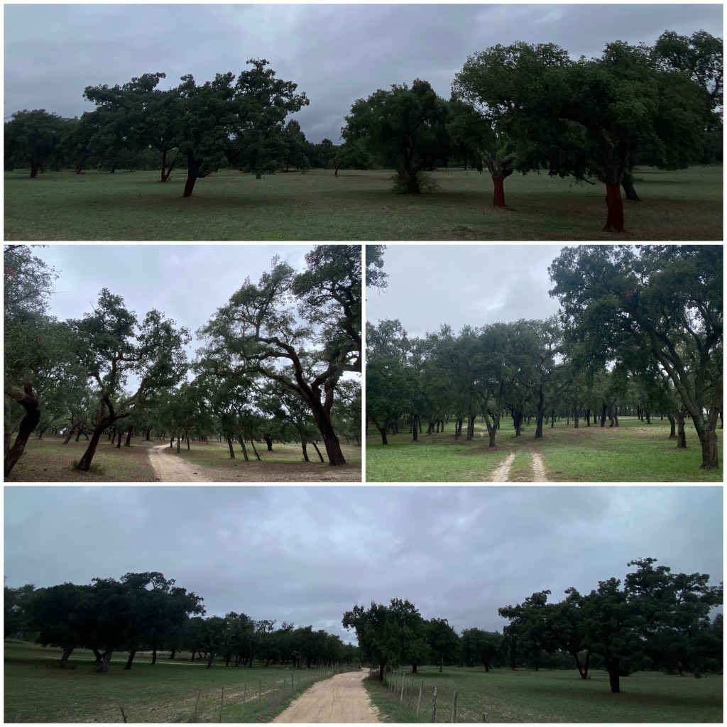 En algún momento se asemeja a los paisajes tipo dehesa del Baixo Alentejo pero, en general, aquí entre los árboles crecen arbustos y no hay el terreno despejado característico de aquellas fincas.